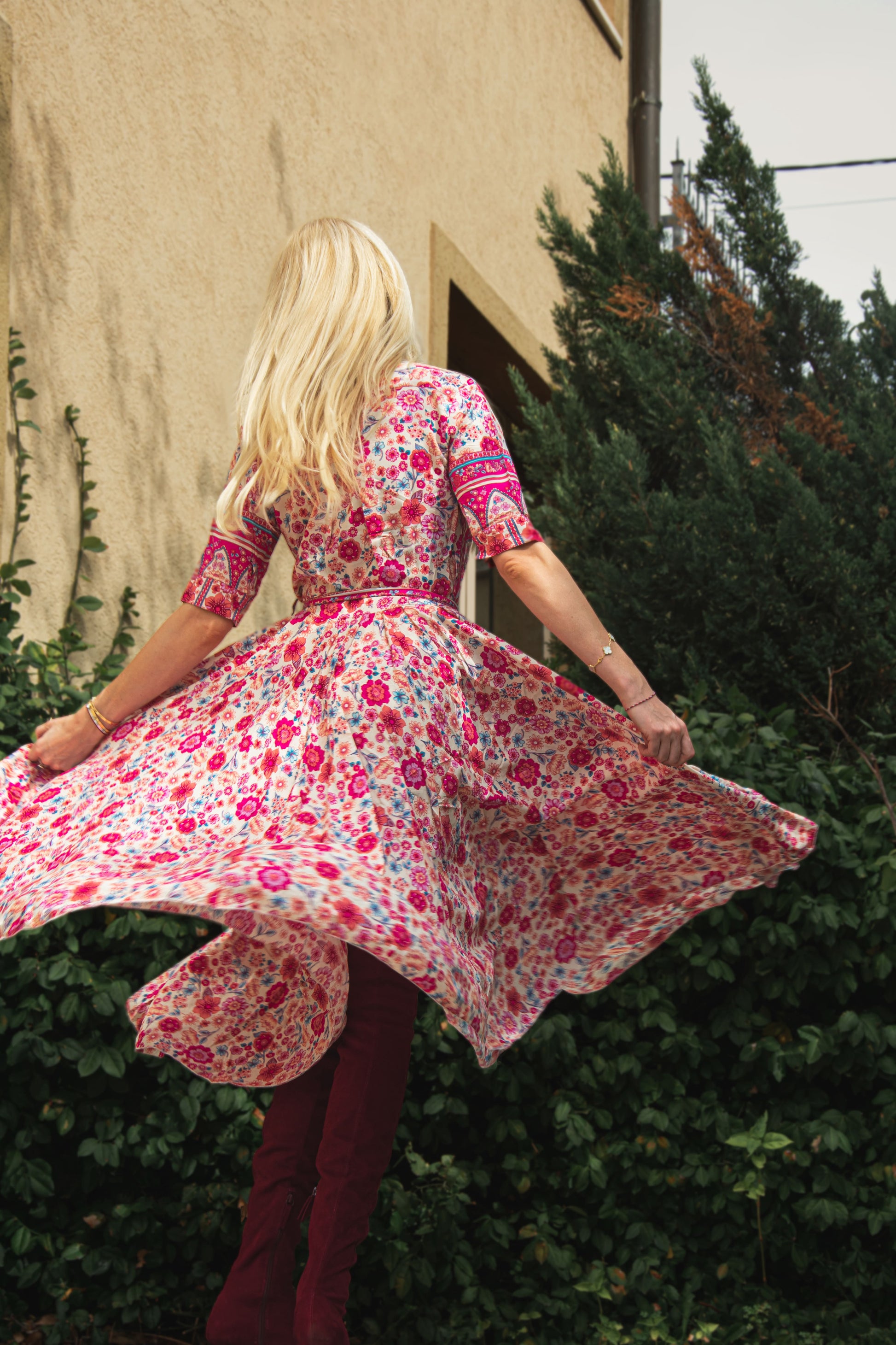 A Ruby Blossom az Incess ruha kollekciójának egyik legelbűvölőbb darabja, amely a nőiesség és az időtlen elegancia megtestesítője. A lábszár középig érő, finoman lebegő szabásvonal nőies eleganciát sugároz, miközben könnyed mozgása a szél táncát idézi. A puha, természetes anyagból készült ruha lágy esése és romantikus virágmintája tökéletes választás mindennapi és különleges alkalmakra egyaránt.